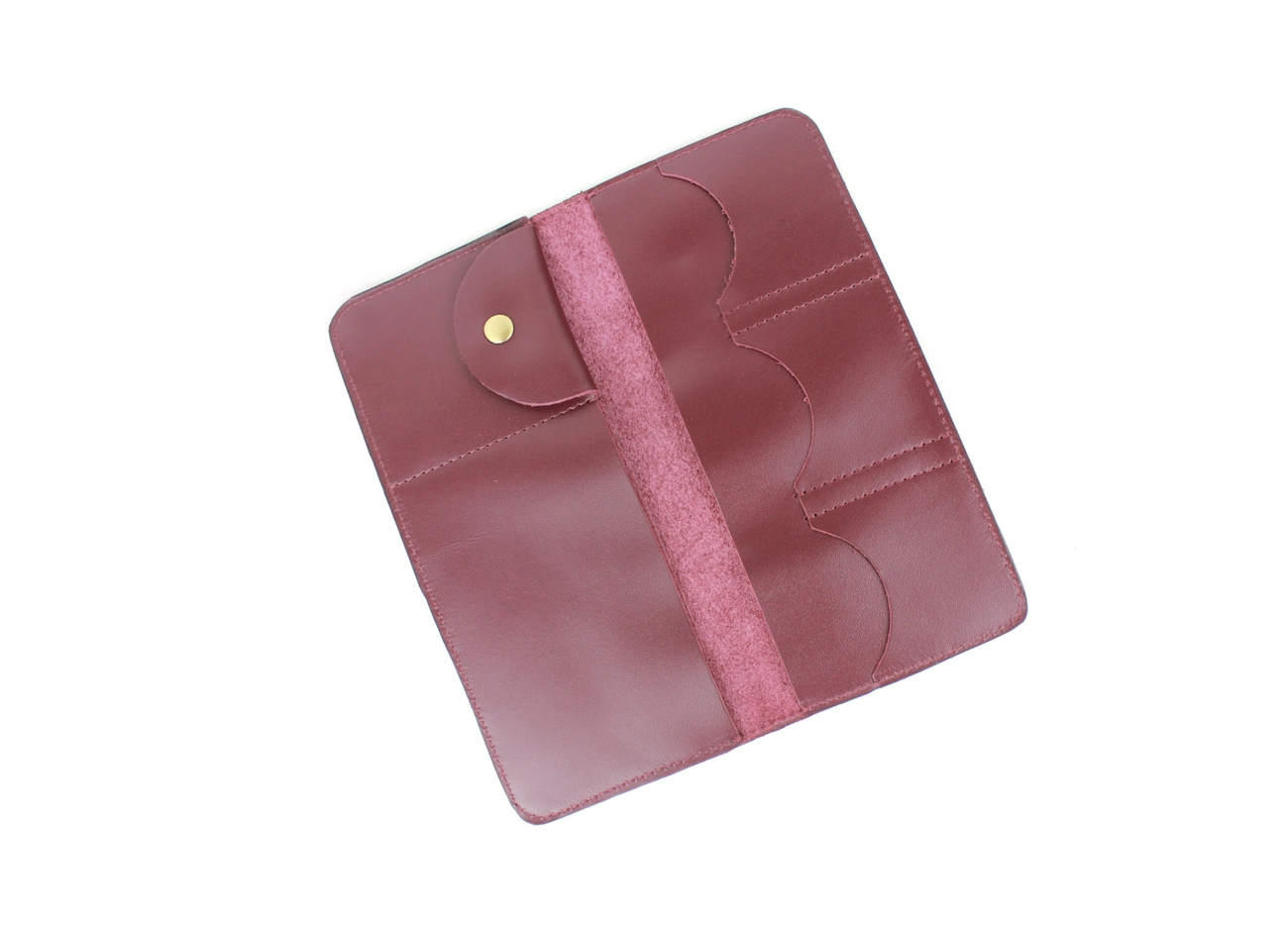 Размер: 25х25 см – в открытом и 25х12 см — в закрытом виде Материал: кожа Внутри: - 2 больших отделения для денег, авиабилетов, страховки и прочих необходимых для путешествия документов - отделение для двух паспортов и телефона - 3 отделения для карточек и визиток - отделение для мелочи, кабеля для телефона, наушников, флешки Возможные дополнительные опции: застежка (+50 грн)