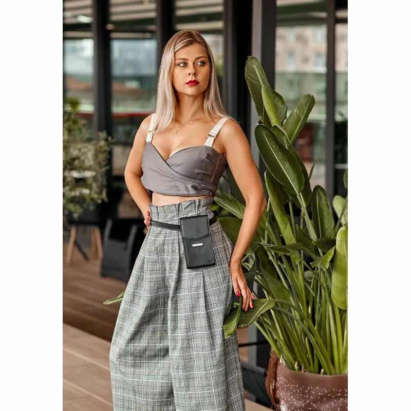 С кожаным ремнем сумка послужит поясом на юбках и брюках, эффектно