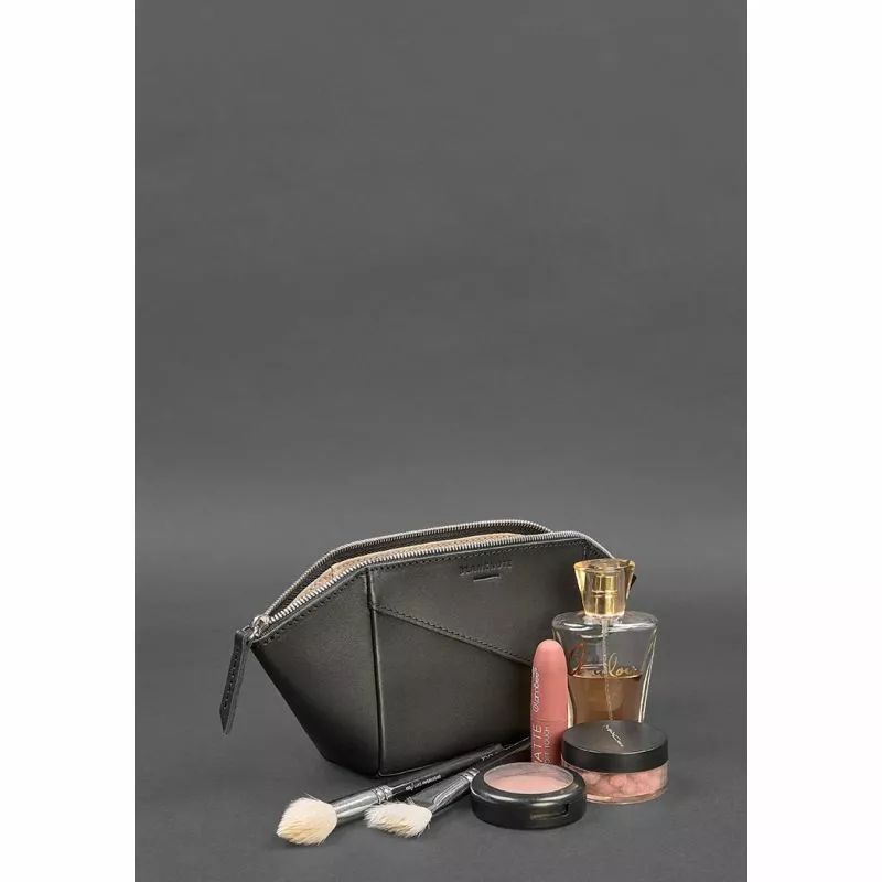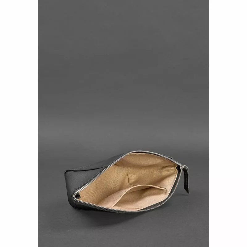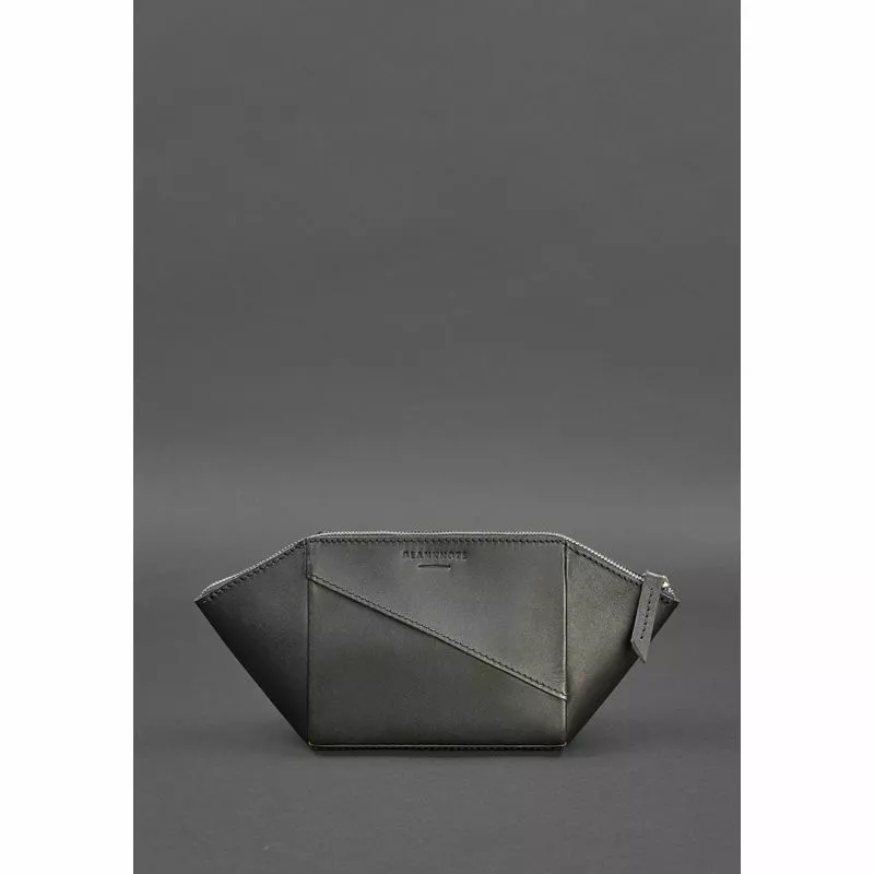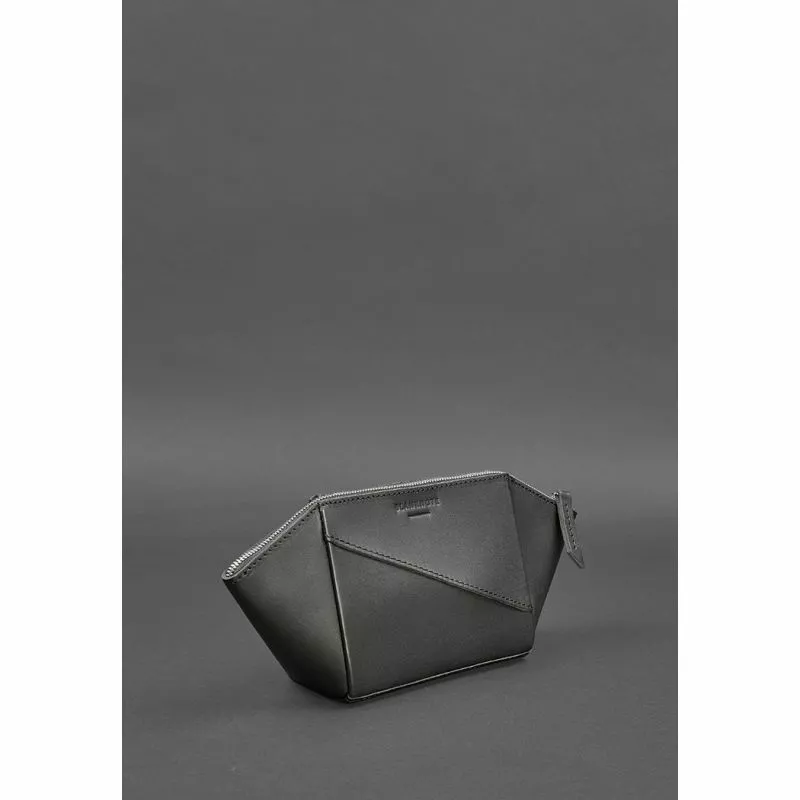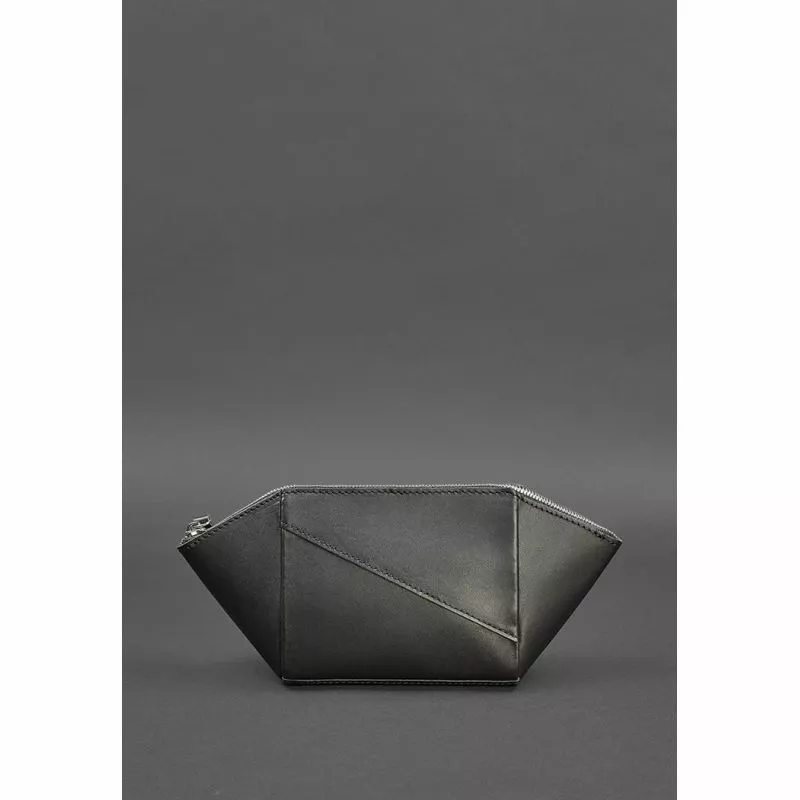 Универсальная кожаная черная косметичка оригинальной формы, станет