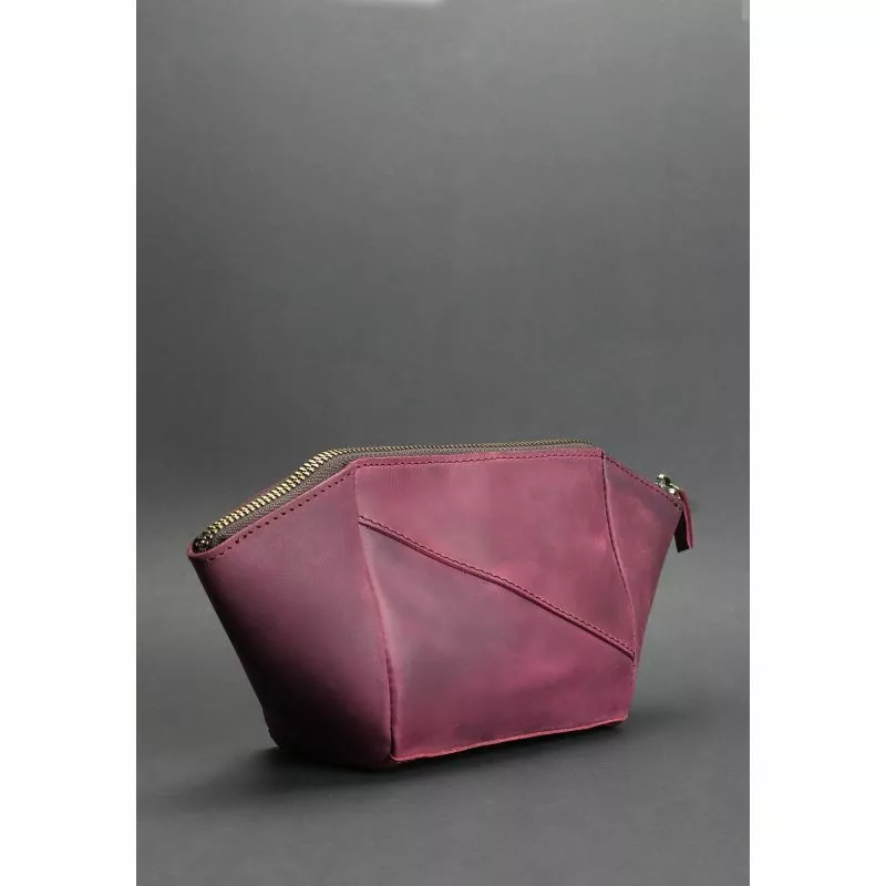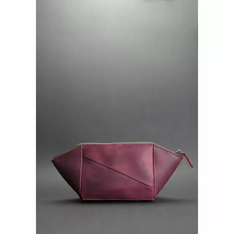 Женская кожаная косметичка бордовая Crazy Horse