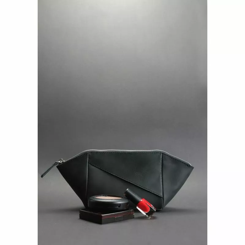 Женская кожаная косметичка черная Crazy Horse