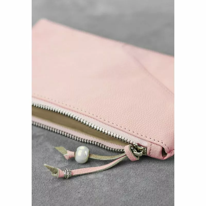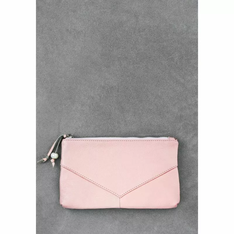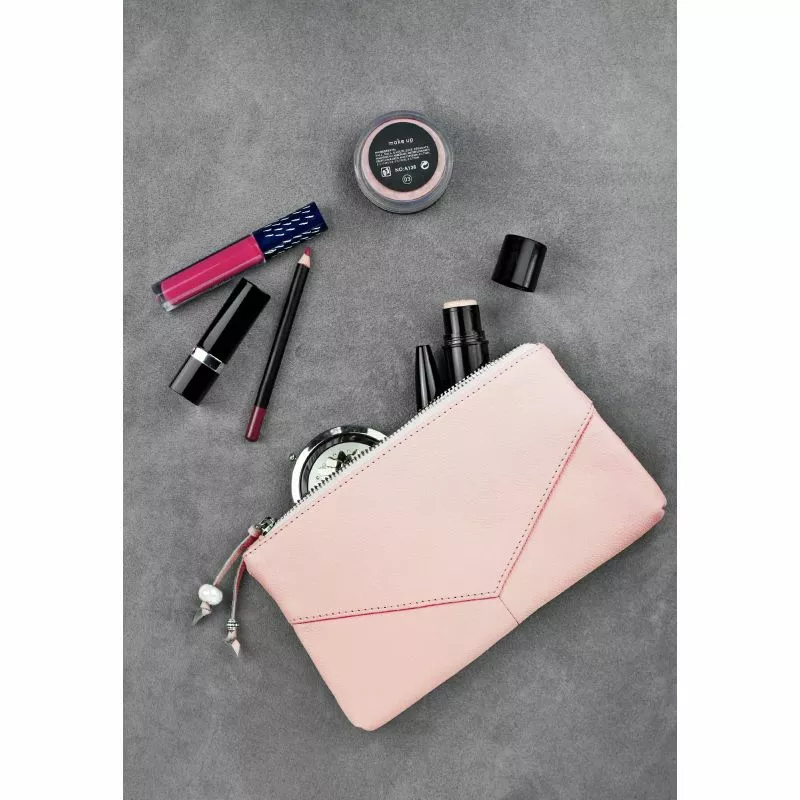 Женская кожаная косметичка розовая