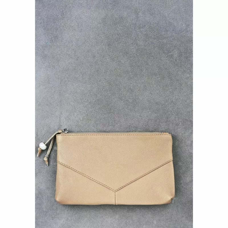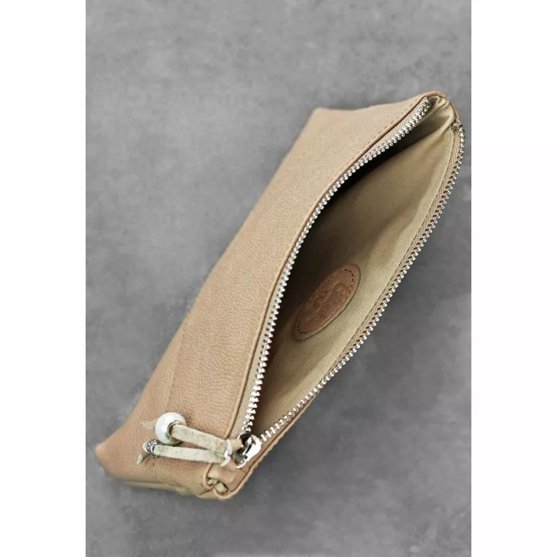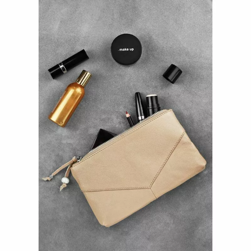 Женская кожаная косметичка светло-бежевая