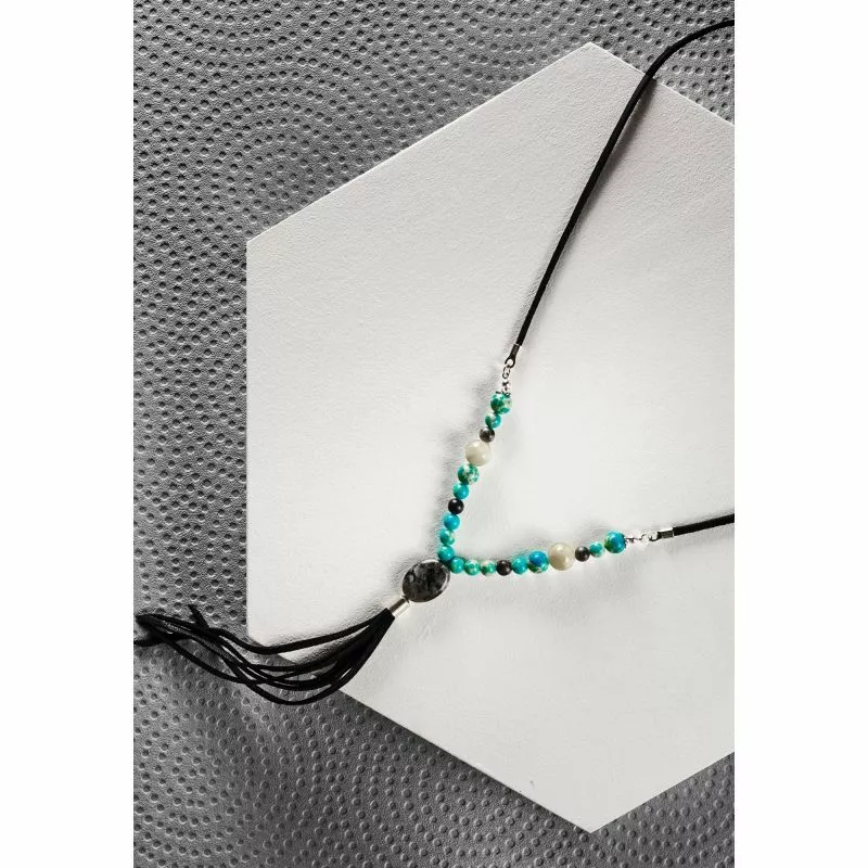Нежные бусины из натуральных камней, нанизанные на замшевый шнур и