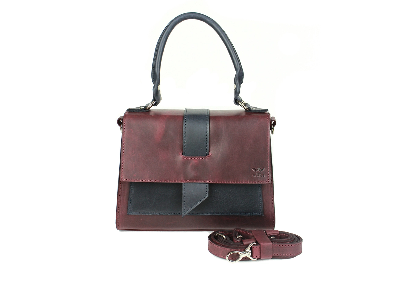 Женская кожаная сумка Ester бордово-синяя винтажная