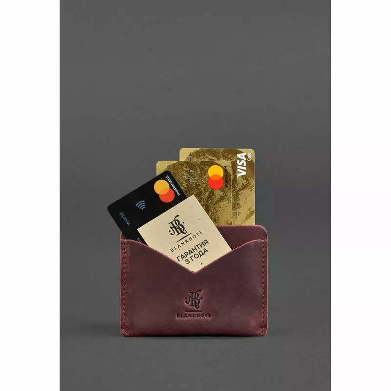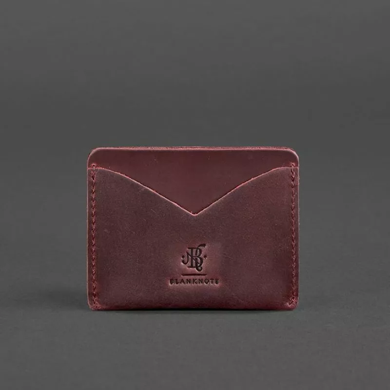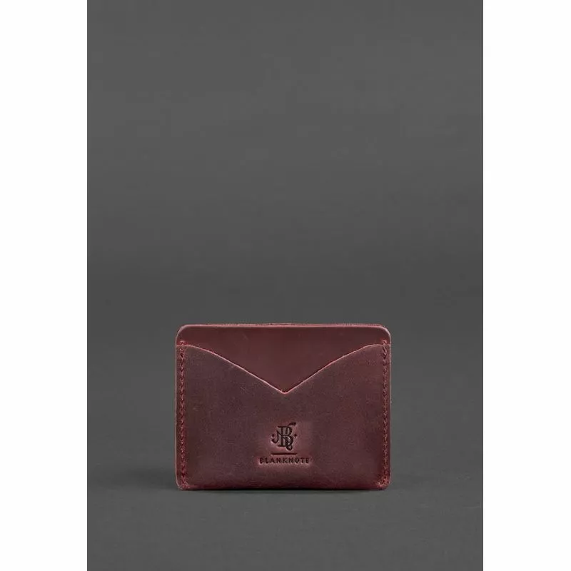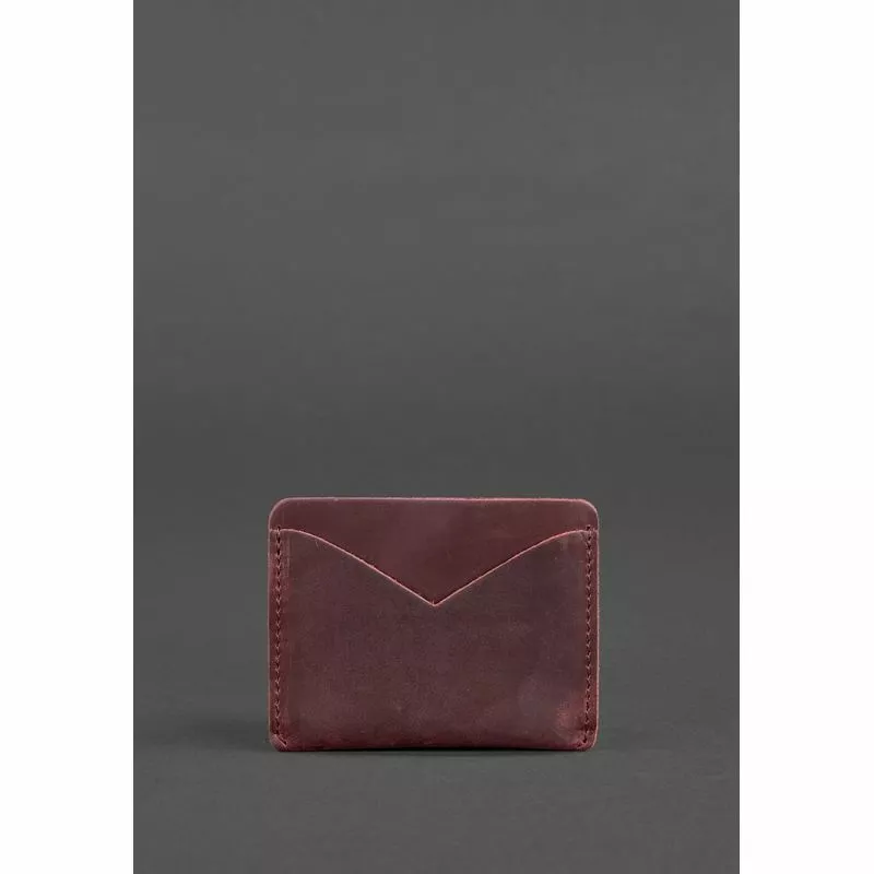 Компактный кожаный кард-кейс в бордовом цвете, который со временем