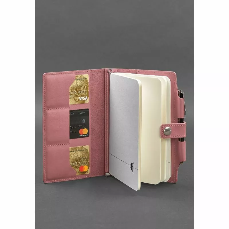 высококачественная кожа. Внутри - классический блокнот, разделенный