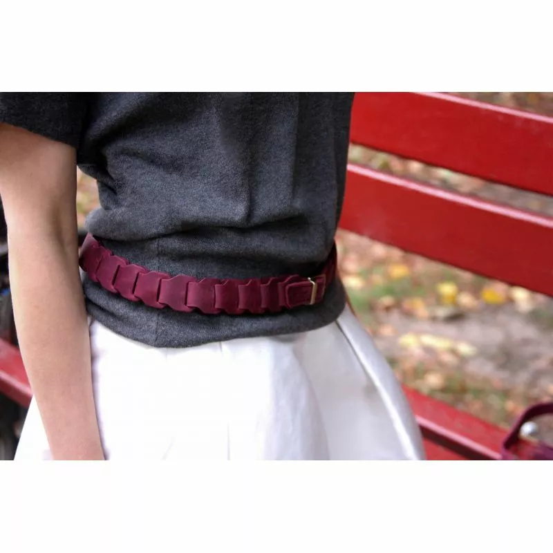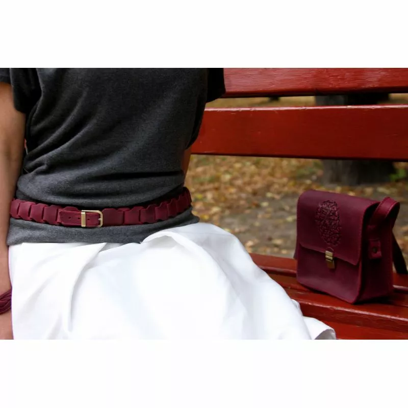 Женский кожаный бохо-ремень бордовый