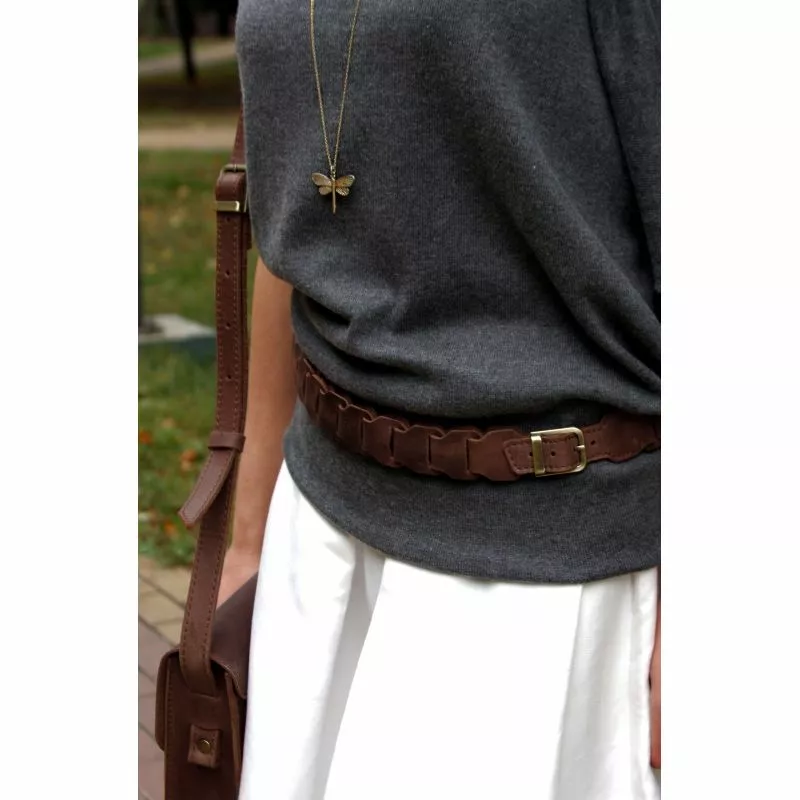 Мастерская BlankNote подготовила еще одно изделие для ценителей винтажного стиля - ремень из винтажной кожи «CrazyHorse». С помощью него можно зафиксировать на бедрах свободный свитер или платье-рубашку, он гармонично смотрится с юбками в пол и дополнит даже самый простой повседневный образ.