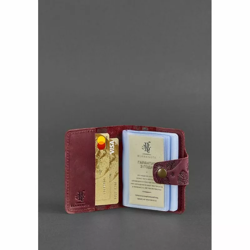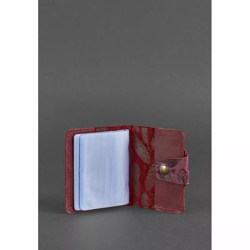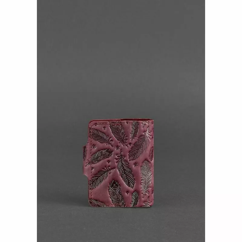 Обложка из натуральной кожи виноградного цвета украшена тиснением в