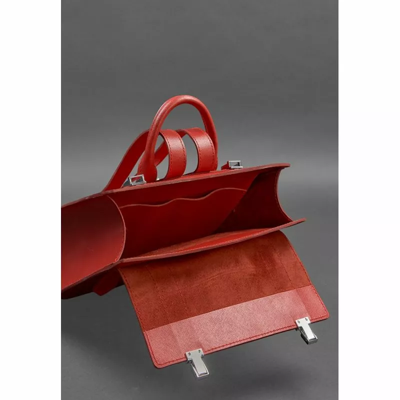 натуральной кожи Saffiano в красном цвете. Эта кожа очень плотная и
