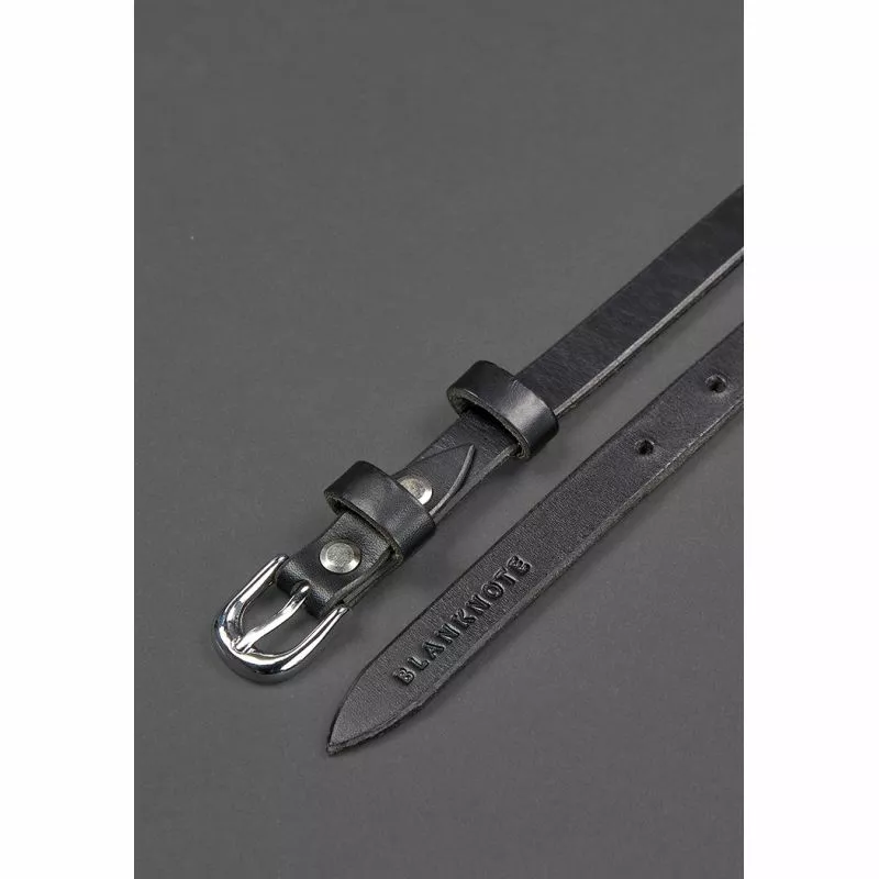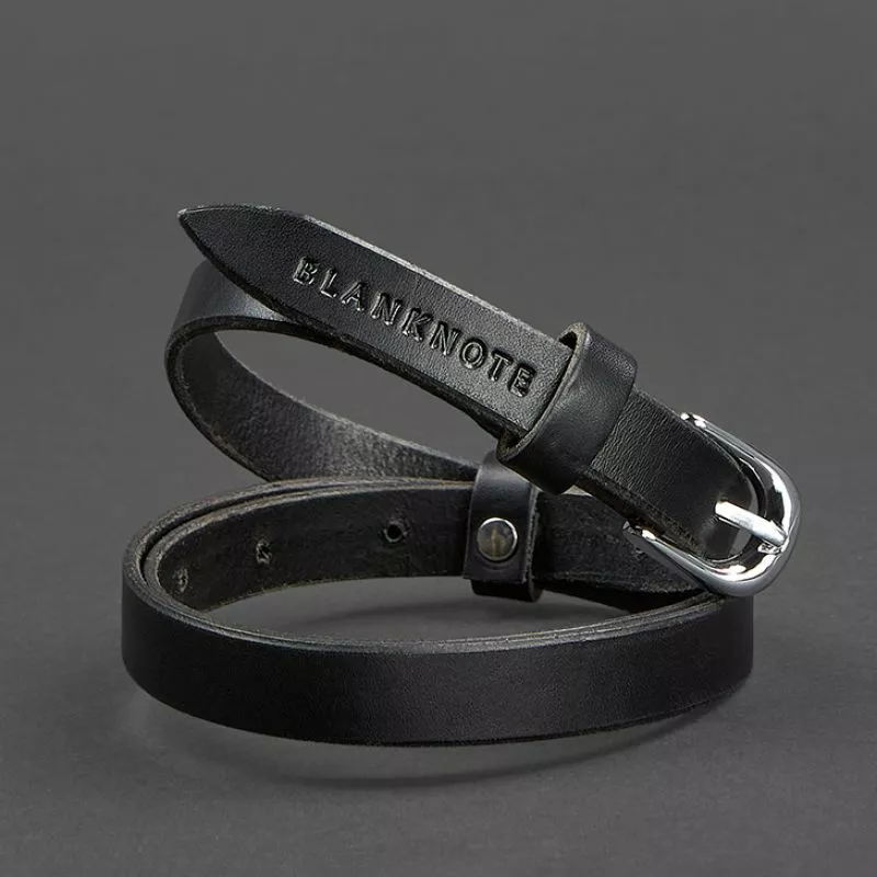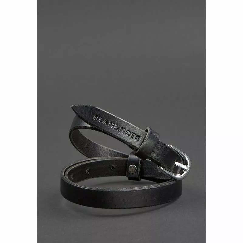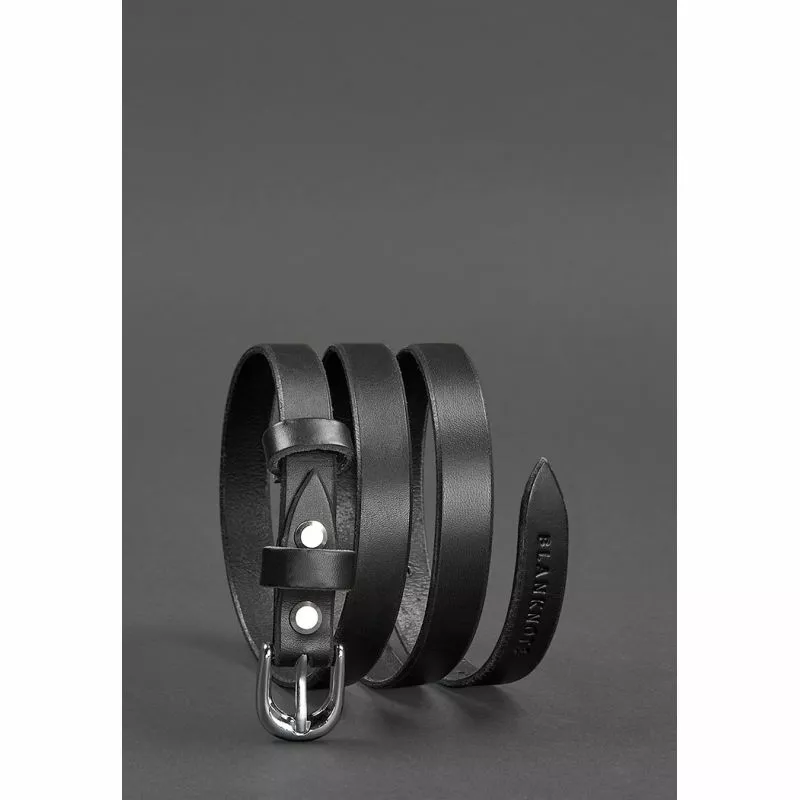 Тонкий женский кожаный ремень черного цвета отлично дополнит