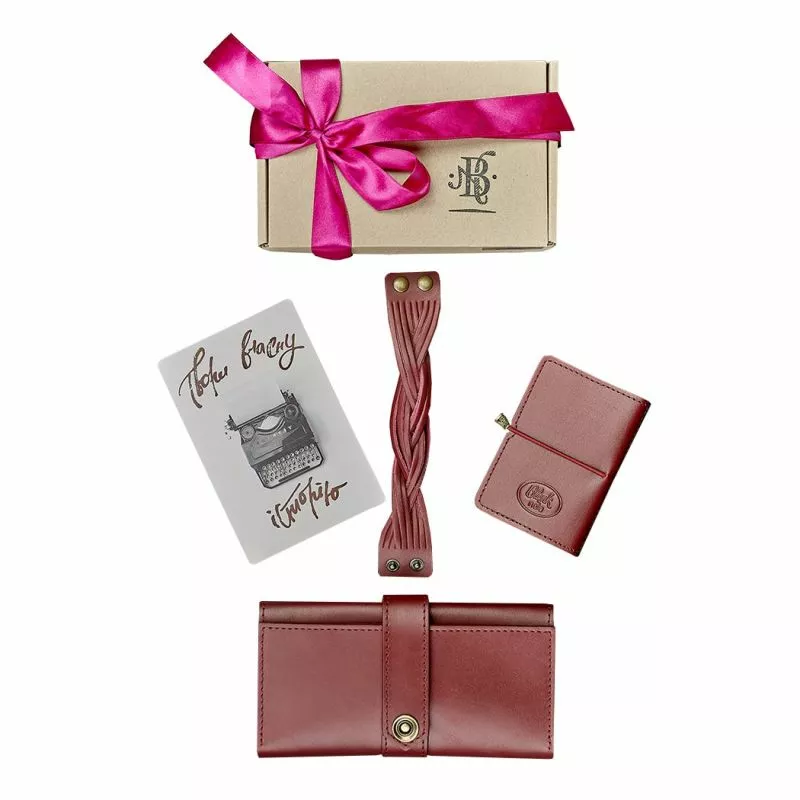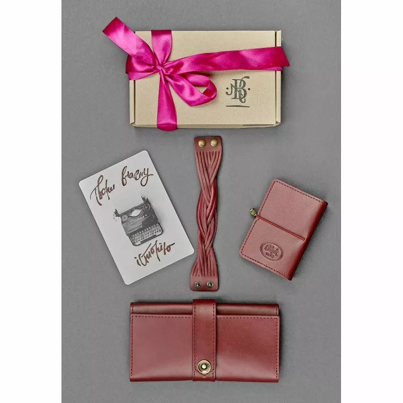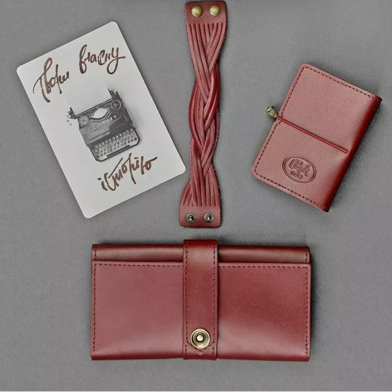 портмоне (10х19 см), кард-кейс (8х11 см), браслет (3,5х20,5 см), открытка (10х15 см)