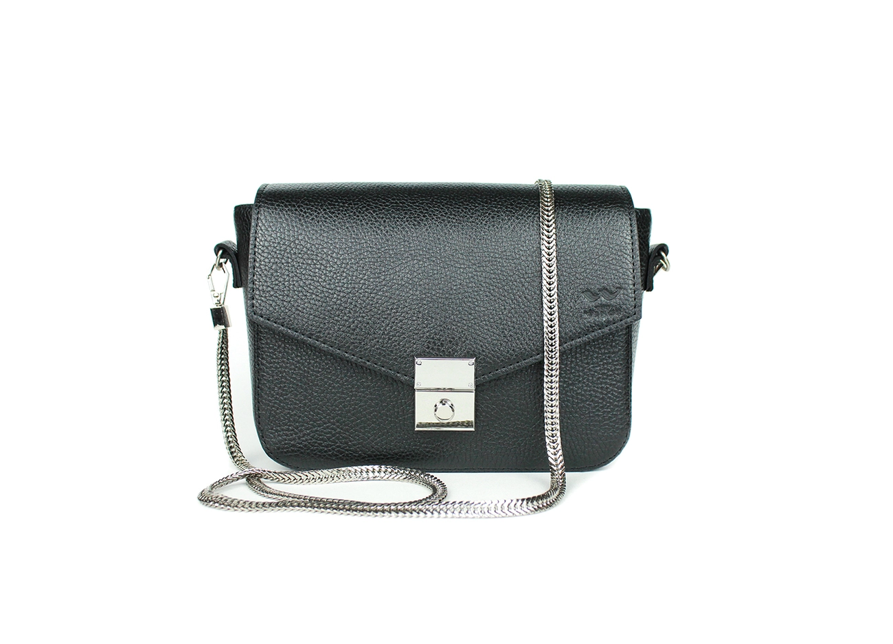 Розмір : 20х15х7 см Матеріал : шкіра, підкладка з тканини Всередині : велике відділення Зовні : кишеня на блискавці на задній стінці сумки Фурнітура : металева, колір нікель Шлейка знімається : ланцюжок або шлейка-стрічка на вибір
